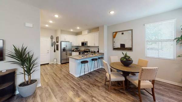 − Stainless steel appliances including built-in microwave, refrigerator, and dishwasher