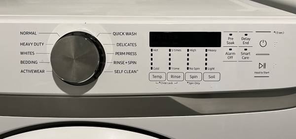 Samsung 5.0 cu. ft. Ultra Capacity Front Load Washer with Super Speed Wash and 7.4 cu. ft. Ultra Capacity gas Dryer. Purchased in December of 2024 Barely used. Selling due to moving and new place not having washer/dryer hookup. Stackable. show contact info