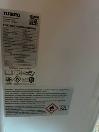Turbo brand portable air conditioner, with window vent,wheels, remote, owners manual. Works excellent! Cold air. Like new