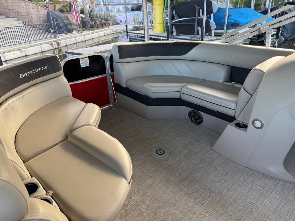 Like-new 2023 Berkshire 22RFXLE pontoon boat in excellent condition and ready for the water. This is a tritoon setup, giving you better stability, smoother rides, and improved performance compared to standard pontoons. Purchased boat new. 1 owner
