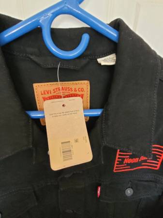Levis black trucker jean denim jacket size Large brand new with tags 60 dollars call or text no emails jeans