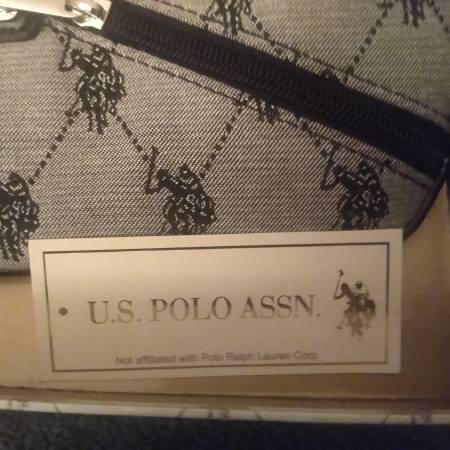 Brand New, unused with Tags, color is black/grey with classic Polo background ground. the purse zippers in the center with two zippers in the front that are there for design. Includes a short strap for caring. Measures at 11 1/2 x 6 1/2 inches, with a 12 inch strap. Has its original gift box w/price tag of $44.