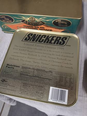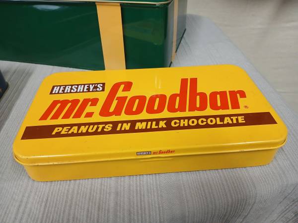 Vintage tin metal boxes excellent condition..$10 each Snickers Warhammer Mr. Goodbar CASH ONLY...$10... each