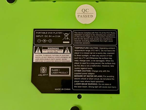 Ninja Turtles Portable DVD Player and Carrying Case come with USB Charging cable