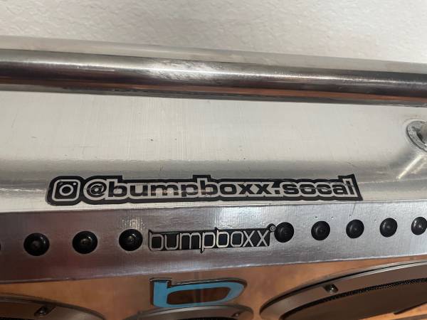 Play your music anywhere with one of Bumpboxx's best sellers. The FLARE6 Model comes in several different colors you can choose from, but this one is the chrome Color design. The FLARE6 models are loud, powerful, and clear with 150 watts of power. The lithium rechargeable battery on this boombox can last up to 8 hours before needing a recharge and has many different options to play the music you love. Bluetooth can be connected for longer distances, or you can use the 3.5 mm aux input or play music from a USB drive. This boombox is 24" long x 14" high, x 6" deep, and weighs 13 lbs, but don't be fooled by the size. This unit can play music loud and clear with Two 6.5" Woofers, a 3" Tweeter, and 150 watts max power. This item has been previously used or may have some signs of cosmetic wear, but is fully operational and functions as intended.