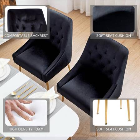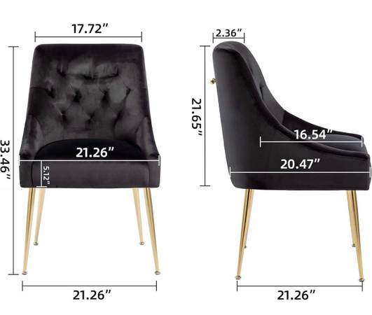 Simple installation: After the golden legs of the velvet dining room chair are fixed and assembled, just screw them into the base to complete the entire installation. The whole process takes about five minutes, and you can enjoy the comfortable and elegant modern dining chairs.