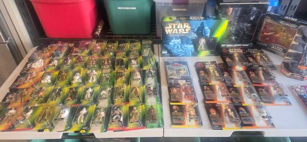 Star Wars collectibles and figurines, women's clothing, BBQ tools and supplies, Thomas Kinkade paintings, vinyl records, music CDs, VHS movies, office supplies, miscellaneous hardback books, new...