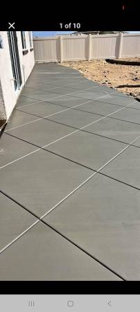 New concrete , Stamp, color, smooth, saw cut ,broom finish. start at $7 sq ft for regular concrete House foundation and plumbing Pool coping , Aluminum patio cover Block walls. Stucco residential...