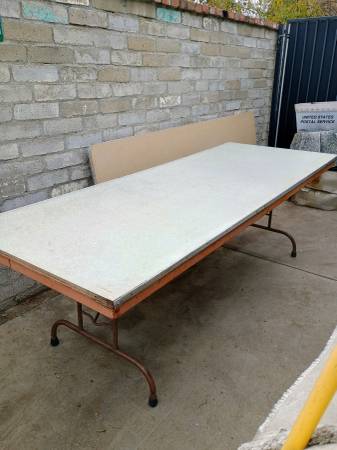 For sale my two tables I'm asking $45 fair condition size tables '8 feet long ' 3 feet wide here my cell if you entersted nine zero 9 -two zero 5 -0128 serious buyers thank