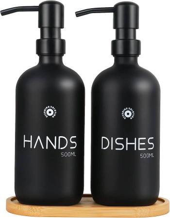 Hand and Dish Soap Dispenser Set - Our soap dispenser set includes hand soap dispenser and dish soap dispenser, you’ll never mix up soap by the permanently fixed labels. The label is not only good for distinction glass soap dispenser but also looks elegant. This kitchen soap dispenser with bamboo tray is minimalist design, ideal as rustic kitchen decor and bathroom decor in your home.