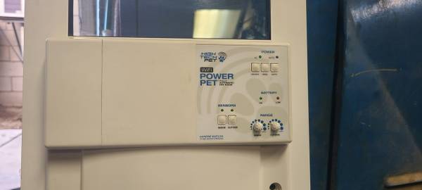Used Power Pet Door (Wi-Fi) with power supply and collars. I have had this for a couple of years and with a new dog decided to replace it with a manual one as my concern about coyotes getting in the yard has gotten better. The pet opening is 8" x 10", and this unit will fit 75" to 80 1/4" door openings. Comes with 5 collars and some batteries, collar failure has been a problem, but I know 4 of the 5 were working when I removed them this week (the other was a spare). The unit itself has worked well during the time I have owned it.
