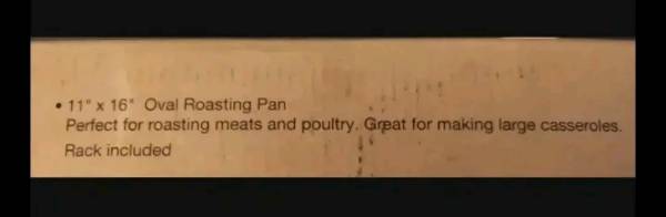 Brand new unused sealed in original box. From the culinary collection chef series by Tupperware. 16x11x4 inches stainless steel non stick roasting pan, includes a rack and directions