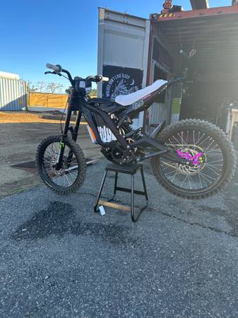 Super clean Surron Lots of extras Marzocchi Bomber 58 forks, BAC controller, NTC rear brake, Pro Taper bars and headstock, Thrill seeker seat cover and bar bag, Carbon frame wrap, Fat tires,...