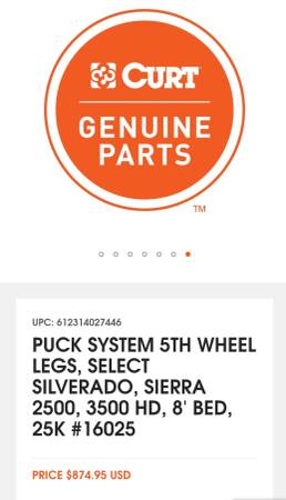 Curt 16025 5th wheel hitch legs for Chevy GMC puck system. Legs fit most curt puck style 5th wheel hitches. Like new condition. Save a lot of money with these legs as they are a non wearing item so buying used is the way to save.