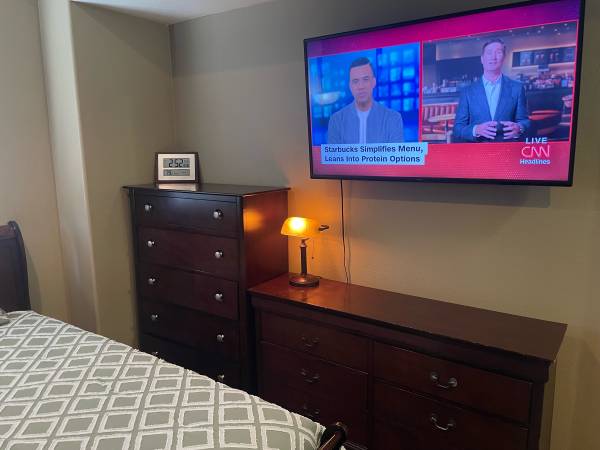 Furnished downstairs room with private bathroom.
