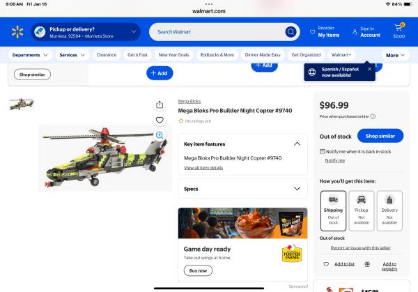 This is a full set of 670 piece Night Copter plastic pro builder collector set #9740, made by Mega Bloks, very similar to Lego. Barely played with, never fully built, in excellent condition, original box is a little rough. From clean, pet and smoke free home. Paid and selling for much more online, FIRM on price.