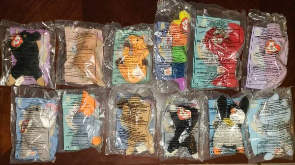 Complete set of 12 Ty Beanie Babies made for McDonald's in 1998. All 12 new in unopened packages. Non-smoker/non-smoking home Pickup Only in South Ontario Cash ONLY! No Venmo, CashApp, etc
