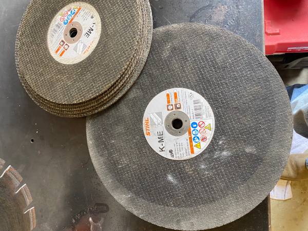 Stihl Ts 420. Comes with a diamond blade and multiple abrasive blades. Has water kit. Less than 10 hours. Runs good