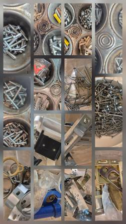 All brand new unused clean hardware, all sizes all types of metals. At least 10 lb in nails black long skinny with heads Can't take pictures of all of them but I need to unload all these things so come by take off for $10 or make offer This is perfect for a handyman person fixer upper general construction, lots of nails make offfer. I'm in the orangecrest area right off of Van Buren and Orange Terrace stop on by anytime