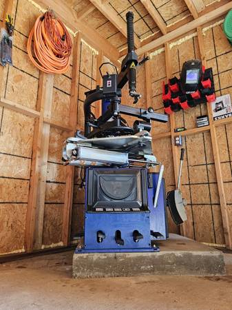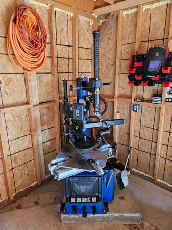 Bead break force 5600 lbs. pnuematic piston includes bead blast air blast on the arm column operating pressure 120-145 psi (8-10 bar) quick Inflation bead blaster and air reserve tank voltage 110V only blue powder coat finish