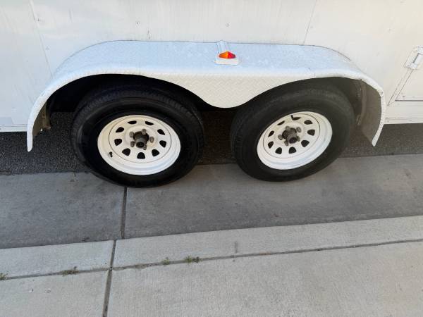 Double axle with hidraulic brake system solid trailer no leaks ramp door and side door also New LED light all arround the trailer tires on really good shape fresh grease on bearings No trades low...